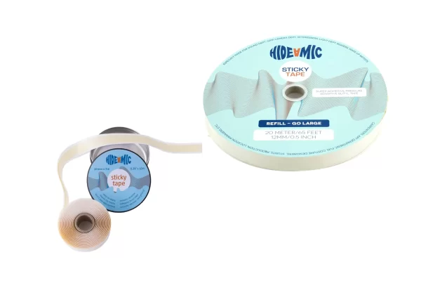 Le ruban butyle sensible à la pression Hide-a-mic est un excellent moyen de monter un microphone cravate, de sécuriser des bijoux bruyants et d’autres accessoires.