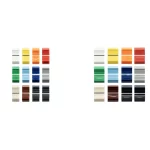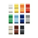 Rouge, Blanc, Beige, Orange, Jaune, Vert, Bleu foncé, Bleu clair, Gris, Marron et deux capuchons noirs.